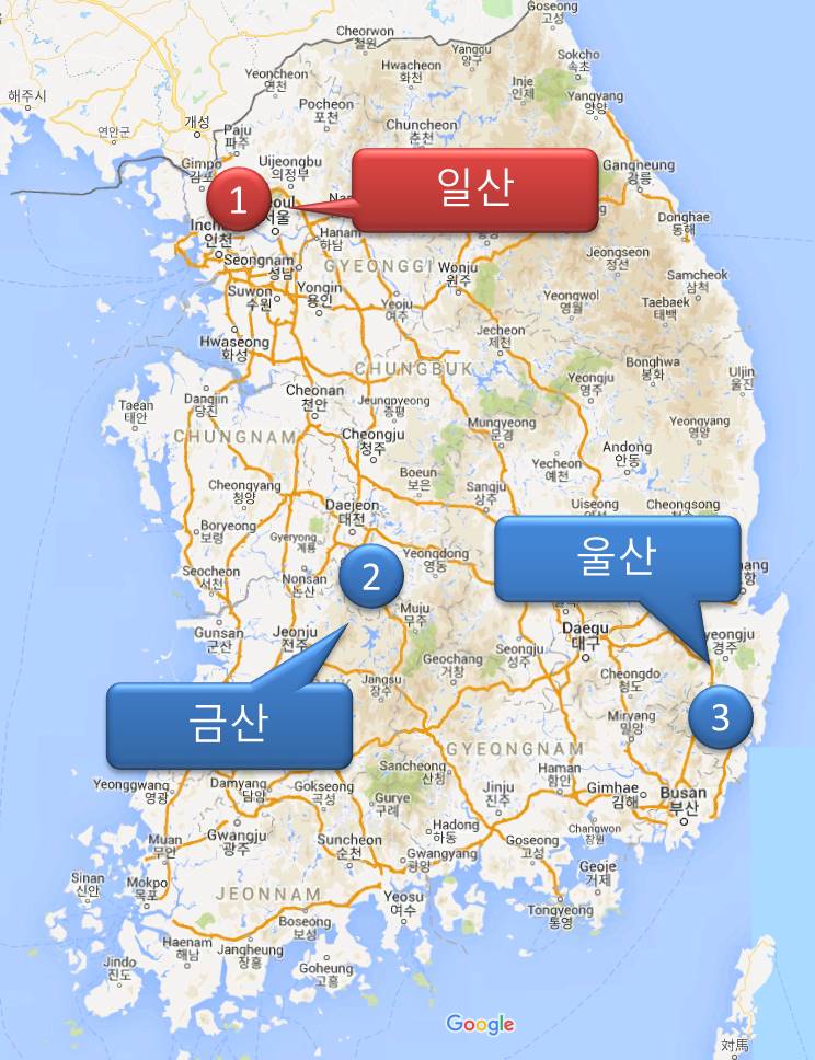 主日で韓国語 地理解説 20190303 管理者 2019年3月4日2019年3月25日 カテゴリー 主日で韓国語 地理解説 2019 今週の巡回地は「일산(イルサン)」でした。일산は서울(ソウル)の北西に位置します。 ①일산(イルサン)②금산(クムサン)⇒みなさんご存知、月明洞近くの高麗人参の産地です。③울산(ウルサン)⇒工業都市として有名です。